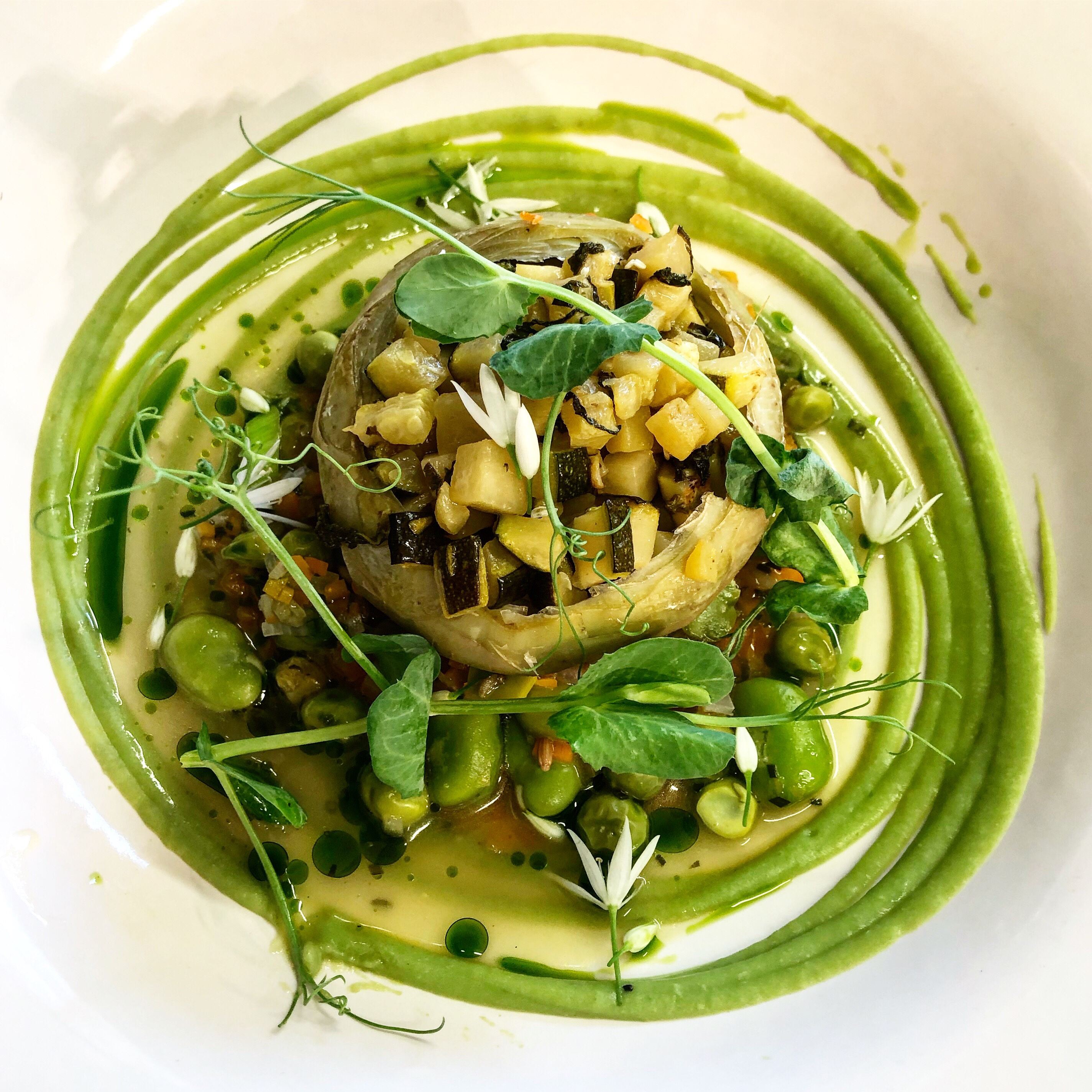 Previous Image Next Image 1f5b6ec5-5509-48ba-bb86-3bc86f39cb54 Artichoke barigoule / mint / courgette / pea