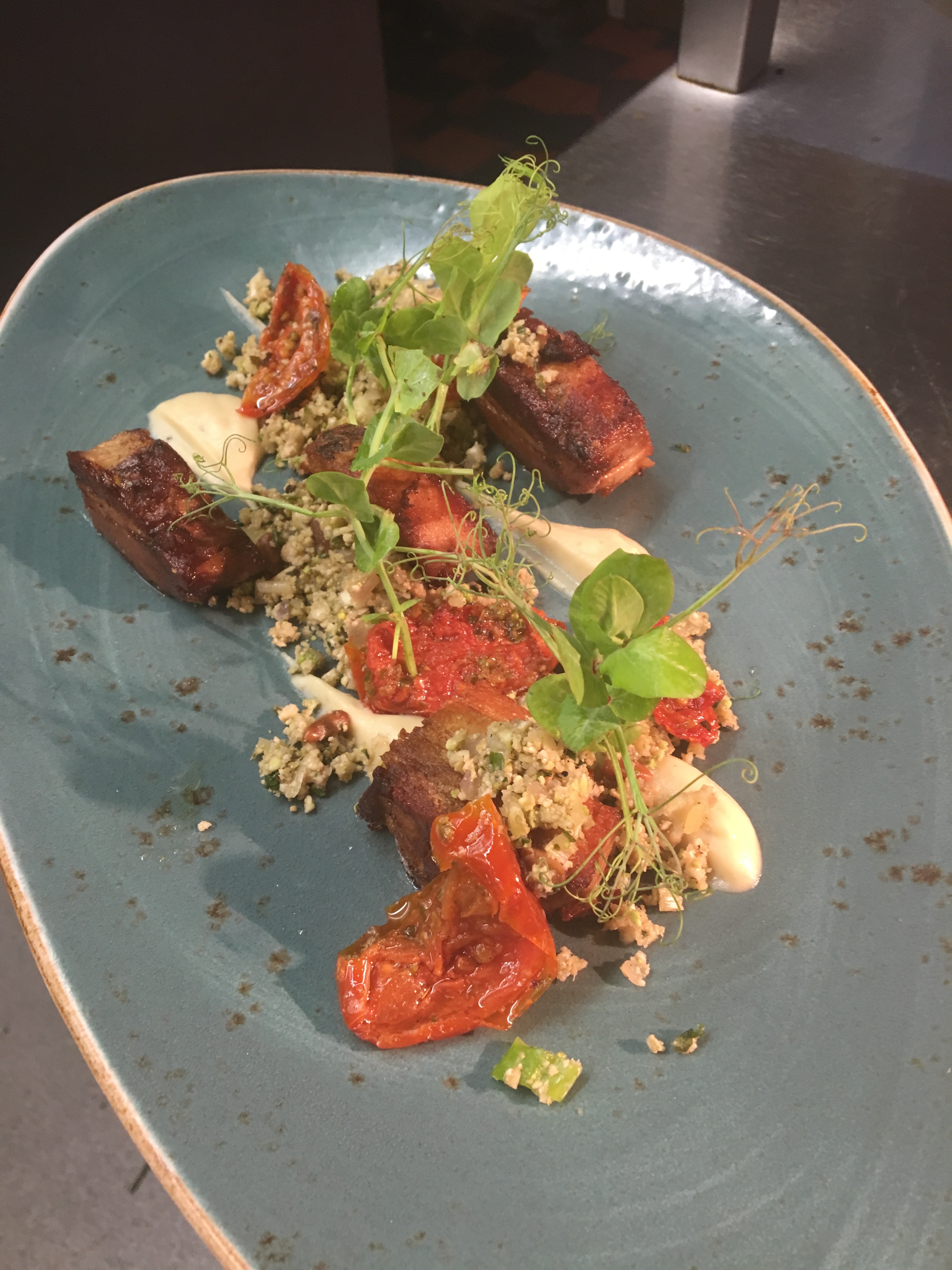 Previous Image Next Image IMG_1127 Confit Pork Belly/ Romanescu Cous Cous/ Pomegranate/ Cauliflower Puree Like Loading...