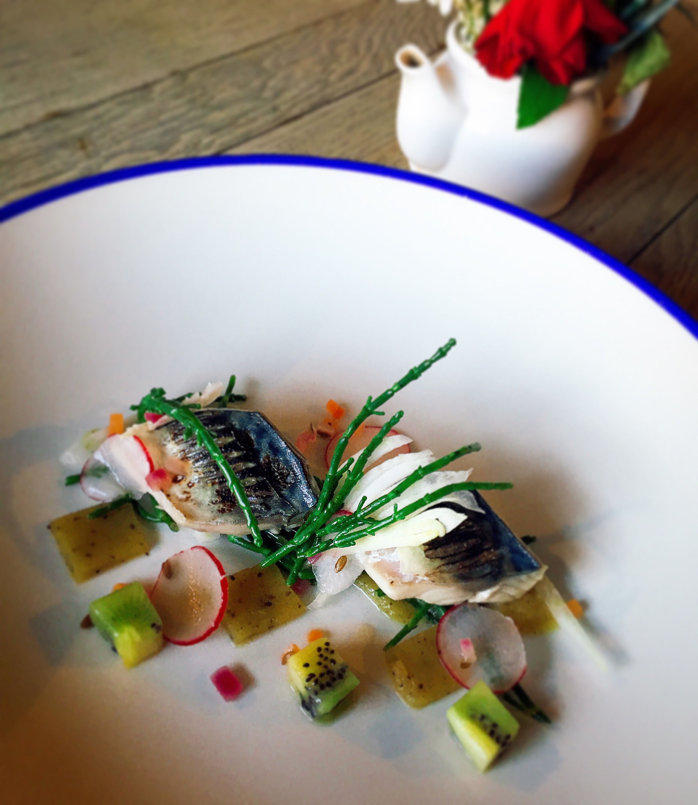 Previous Image Next Image IMG_1715 Mackerel Escabeche / Samphire / Fennel / Radish / Kiwi Like Loading...